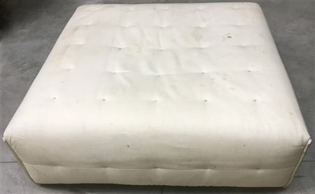 Grande pouf rivestito in tessuto bianco, piedini in plastica nera. Italia, prod