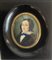 Scuola del secolo XIX "Ritratto di donna con fiocco blu" miniatura ovale (cm 6,5x5) In cornice