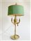 Lampada da tavolo in ottone a tre luci, paralume in tessuto color verde ad alte