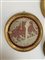 Lotto composto da un ventaglio e quattro ricami in cornici raffiguranti soggett