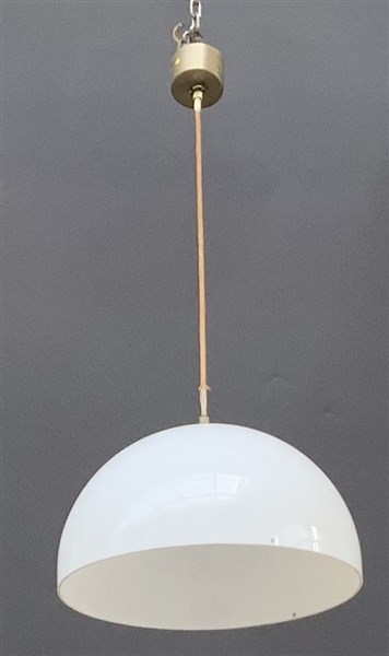 Lampada a sospensione con calotta in metacrilato bianco unita a due mensole sem