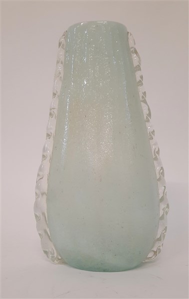Manifattura di Murano Vaso in vetro lattimo pulegoso con applicazione di morise