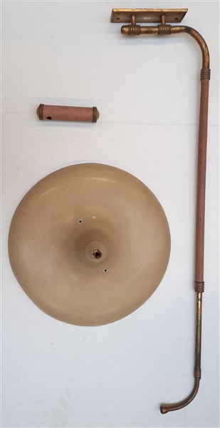 Parti di lampada con braccio orientabile in ottone e paralume verniciato beige e bianco. Italia, anni '50. (difetti e mancanze)