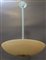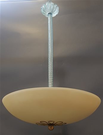 Lampada a sospensione con fusto in vetro a torciglione azzurro, coppa paralume in metallo verniciato bianco, rosetta in ottone. Italia, secolo XX. (h cm 82) (lievi difetti)