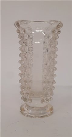 Vaso in vetro trasparente incolore a sezione quadrangolare decorato a bugne. Italia, secolo XX. (h cm 19,5) (lievi difetti)