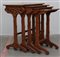 Gruppo di quattro tavolini Liberty a nido in legno di rovere massello intagliat