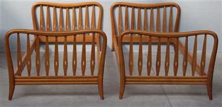 Coppia di letti singoli con struttura in legno. Italia, anni '50. (cm 97x70x200) (lievi difetti)