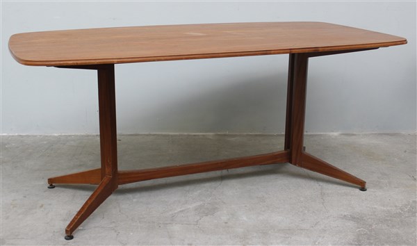Tavolo da pranzo in legno con piedini in ottone. Italia, anni '50/'60. (cm 170x