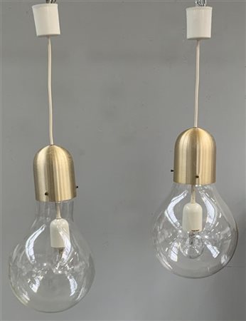 Stilux Coppia di lampade a sospensione con diffusore a bulbo. Milano, anni '80.