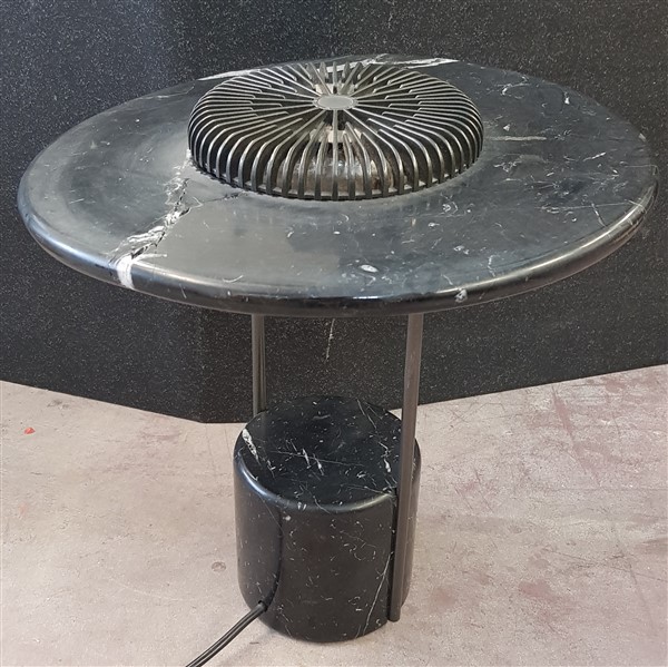 Lampada da tavolo modello "Aureola". Produzione Cini & Nils, Milano, anni '90. Metallo verniciato grigio, base e disco superiore in marmo nero Marquinia. (h cm 37) (gravi difetti e restauri)