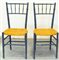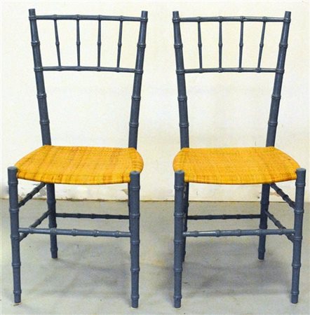 Coppia di chiavarine con struttura in legno verniciato color celeste, seduta in