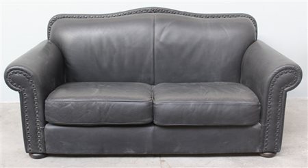 Divano a due posti imbottito e rivestito in pelle nera. Italia, anni '80. (cm 190x91x95) (lievi difetti)