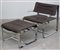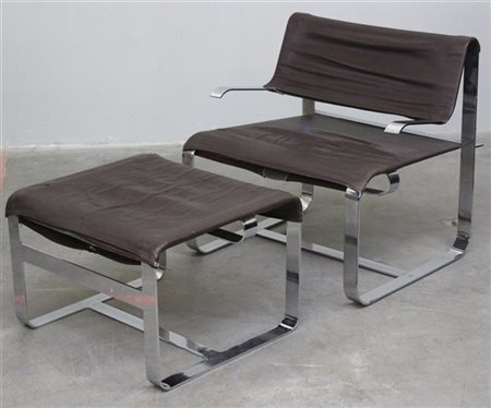Poltrona con pouf con struttura in acciaio cromato e sedute e schienale in pell