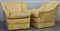 Coppia di poltrone imbottite e rivestite in tessuto giallo, piedini in legno ma
