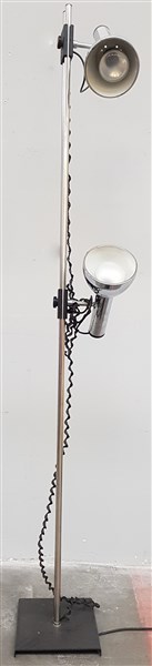 Lampada da terra a due luci reclinabili. Produzione Luci, Italia, anni '70. Metallo cromato, base in metallo nero. (h cm 168) (lievi difetti)
