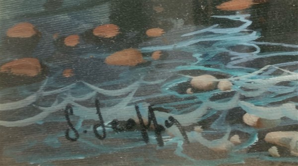 Firma indecifrata "Marina con pescatori" olio su tela (cm 50x70) Firmato in bas