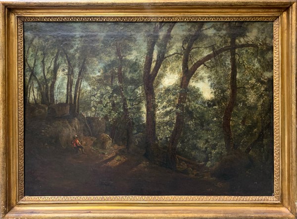 Ignoto del XIX Secolo "Viandante nel bosco" olio su tela (cm 55x78) In cornice