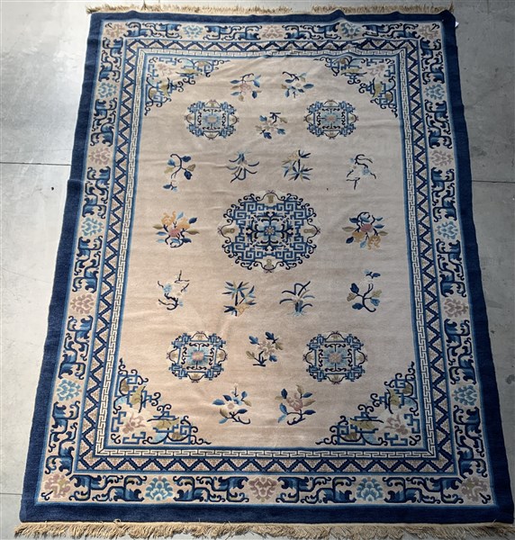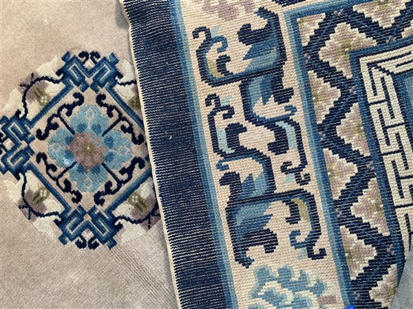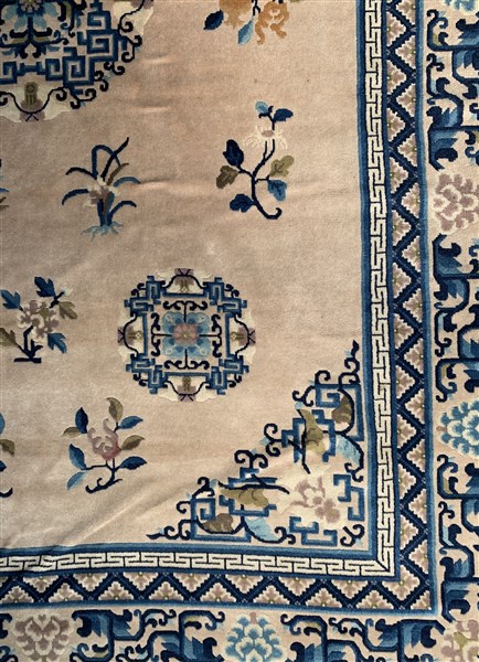 Tappeto Cina, Secolo XX. Decoro con piccoli medaglioni su fondo beige (difetti)