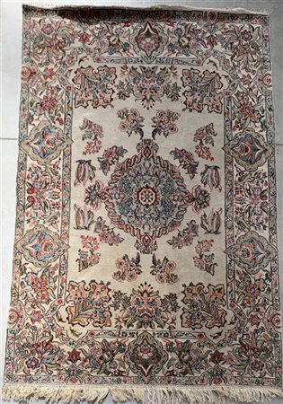 Tappeto Keshan, Persia, Secolo XX. Decoro floreale di ispirazione francese su fondo bianco (Lievi difetti)(cm 217x143)