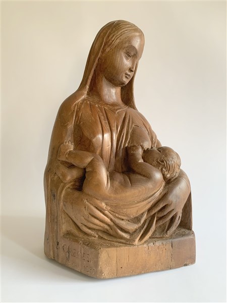 G. Cremesini "Madonna del latte" scultura lignea (h cm 58) firmata e datata 1987