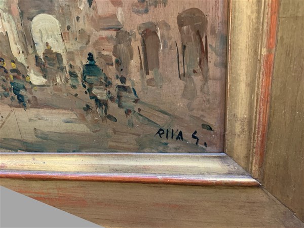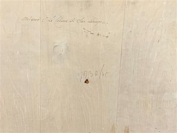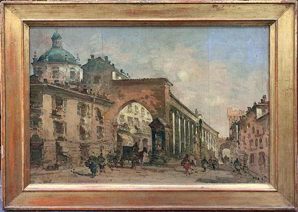 Giovanni Riva "Milano: Le Colonne di San Lorenzo" olio su compensato (cm 50x70)