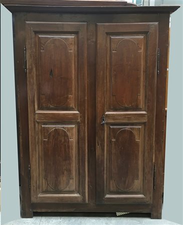 Armadio in legno a due ante riquadrate e pannellate (cm 141x187x55) (difetti)