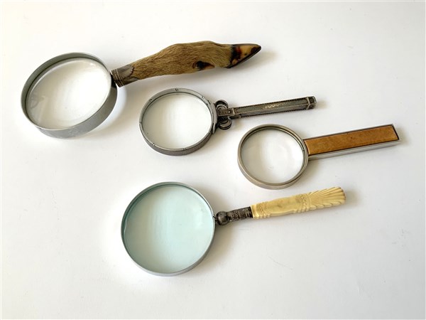 Lotto composto da quattro lenti di ingrandimento di manifatture, materiali e mi