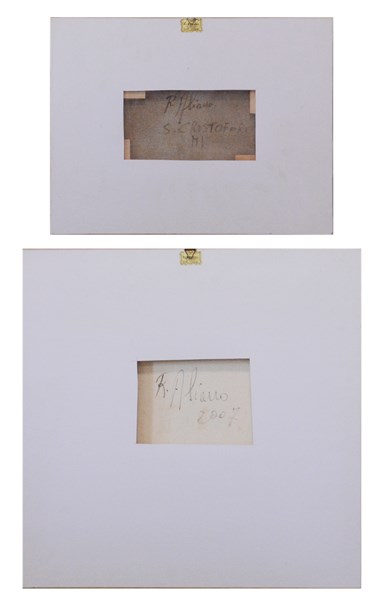 Firma indecifrata. Lotto di due dipinti ad olio raffiguranti "Scorci di Milano" misure diverse, firmati in basso a destra e sinistra. In cornici