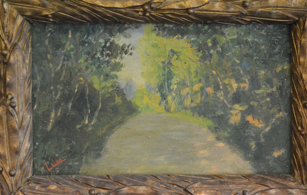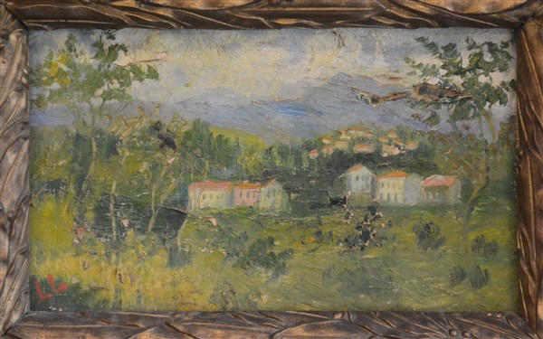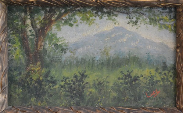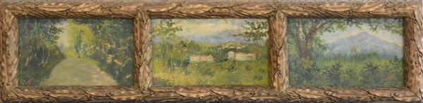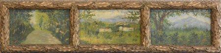 Luce "Paesaggi" tre dipinti ad olio su cartone raccolti in un'unica cornice (cm 17.5x27.5) (difetti)