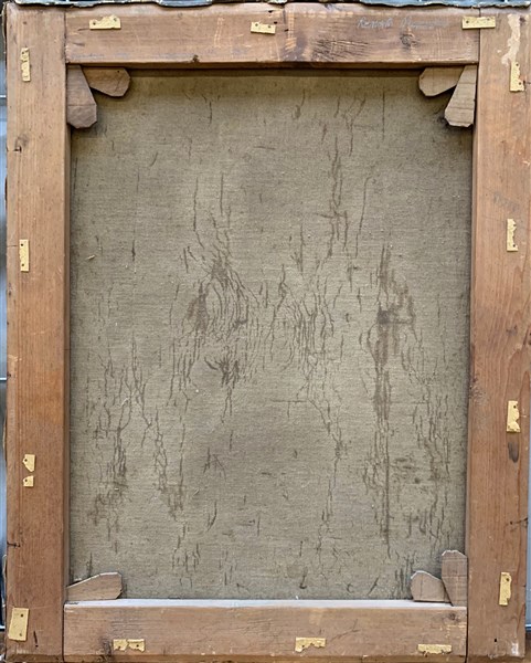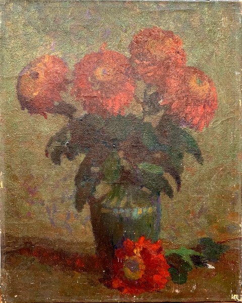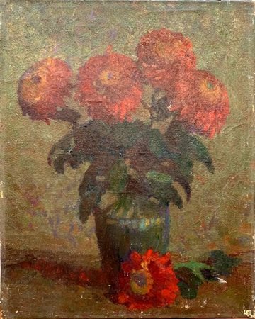 Ignoto "Vaso con fiori" olio su tela (cm 66x53) iscritto sul telaio (difetti)