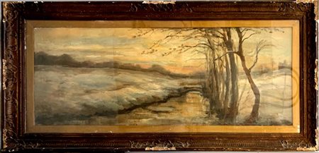 Ignoto "paesaggio invernale" olio su compensato (cm 47x120) firmato in basso a