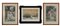 Lotto di tre litografie a colori raffiguranti scene galanti e scena di caccia, misure ed epoche diverse, in cornici (difetti)