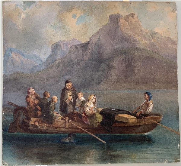 Artista del XIX Secolo "L'ultimo viaggio" acquerelli su cartoncino (cm 50x53,5)