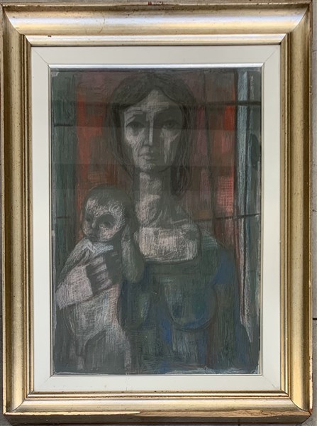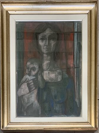 "maternità" tecnica mista su tela (cm 65x45) firmata in basso a sinistra, in cornice