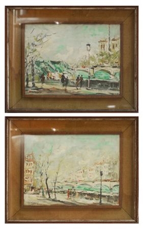 Cremonesi "Scorci di città con fiume" coppia di dipinti ad olio su tela (cm 30x