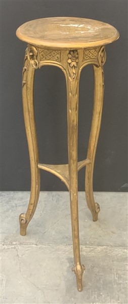 Base portavaso tripode in legno intagliato e dorato con montanti mossi (h cm 105, d cm 34) (difetti)