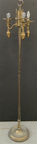 Lampada da terra con fusto in ottone a tre luci. Italia, anni '50. (h cm 183) (difetti)