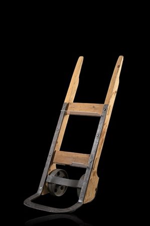 Carrello in ghisa e legno con montati reggilibri in plexiglass. Seconda metà se