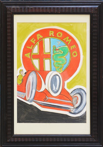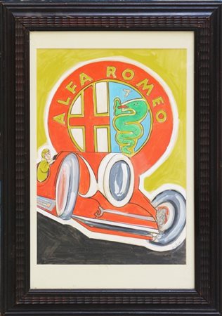 "Alfa Romeo" tempera su carta (cm 48x33) Firmato in basso a destra. In cornice