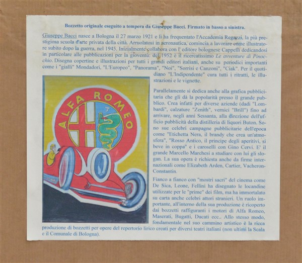 Giuseppe Bacci "Alfa Romeo" tempera su carta (cm 48x33) Firmato in basso a destr