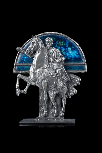 Del Campo "Senza titolo" 1988, scultura in fusione di bronzo, vetro e smalti (h cm 20) firmata, datata e numerata 39/100