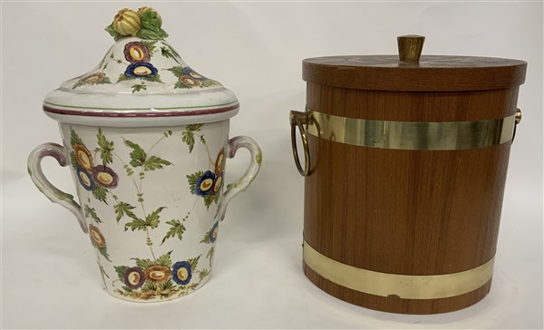 Lotto composto da due portaghiaccio, uno in legno e l'altro in ceramica, misure diverse