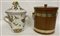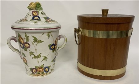 Lotto composto da due portaghiaccio, uno in legno e l'altro in ceramica, misure