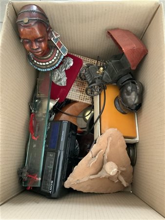 Cartone contenente souvenir ed altri oggetti per usi differenti (difetti)