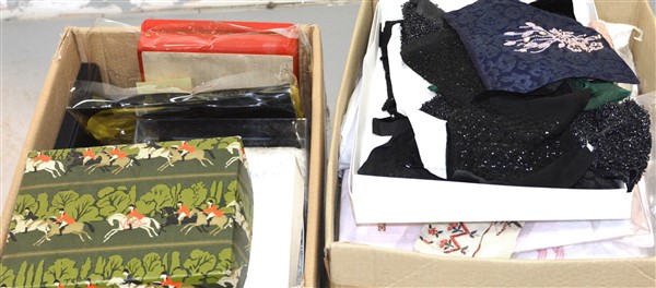 Lotto di due cartoni contenenti numerose tovaglie e pizzi di fatture differenti