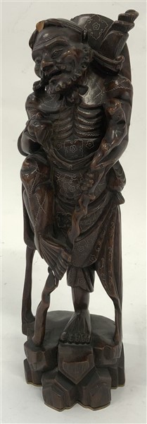 Scultura in legno duro con intarsi in filo d'argento raffigurante Shoulao (dife