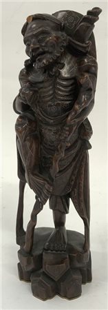 Scultura in legno duro con intarsi in filo d'argento raffigurante Shoulao (difetti e mancanze)