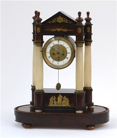 ANONIMO Orologio a portico in legno, bronzi dorati e alabastro. Quadrante a fa