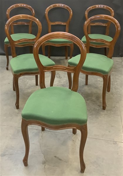 Gruppo di sei sedie con schienale a giorno, gambe anteriori mosse e posteriori