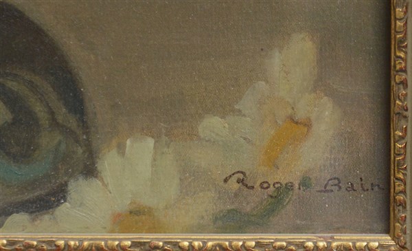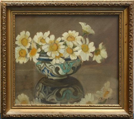 Firma indecifrata "Natura morta con fiori" olio su cartoncino (cm 26x30) firmat